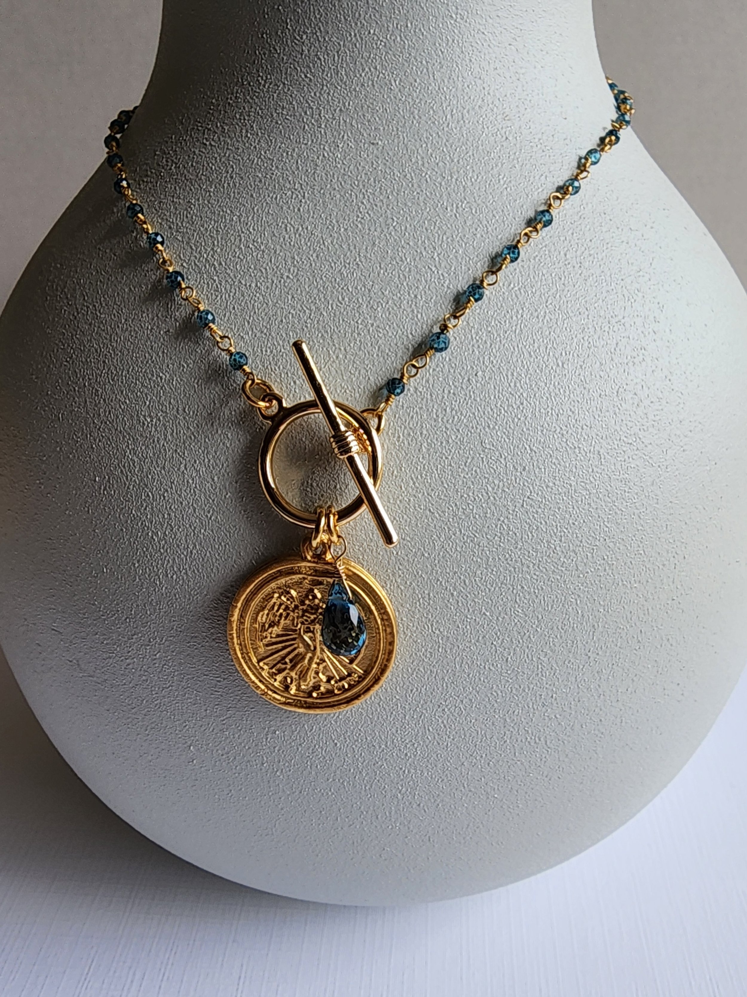 The necklace measures approximately 16 inches with a 2 inch extender chain.